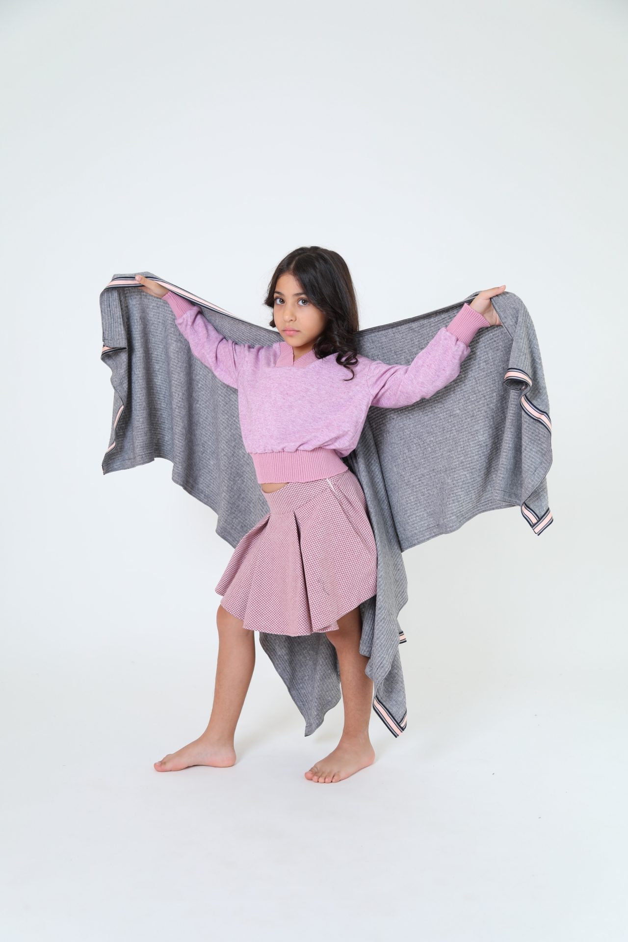 A soft, machine-knit wool-blend look without the itch—this cropped kids’ piece comes in airy sky blue with a subtle textured finish. Pair it with the matching mother-daughter style to celebrate coordinated moments with comfort and ease.